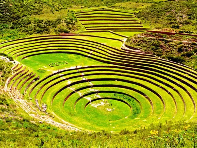 • Moray: Nuestra visita termina visitando las terrazas circulares de Moray, las cuales son una muestra de cómo el hombre andino desafío a la naturaleza y aprovecharon su medio geográfico para utilizarlo en su beneficio, estos andenes circulares sirvieron de laboratorio agrícola que permitió obtener una gran variedad de especies de papa, maíz, entre otros productos.